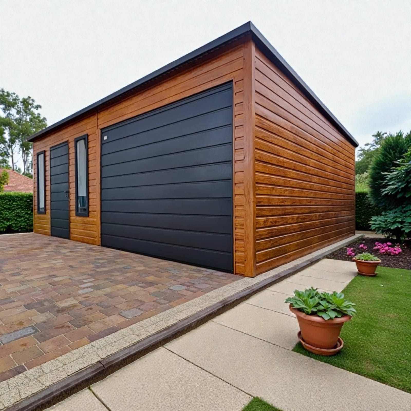 Domek ogrodowy 6×5,8 drewnopodobny ze schowkiem
