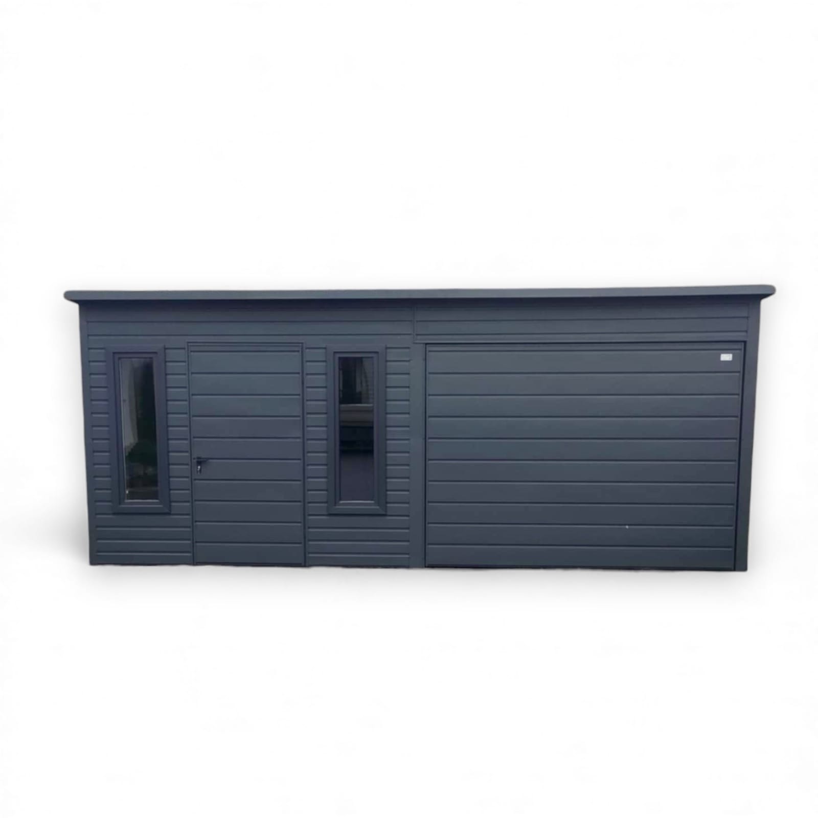 Garaż blaszany Premium 6×5 grafit brama uchylna okna