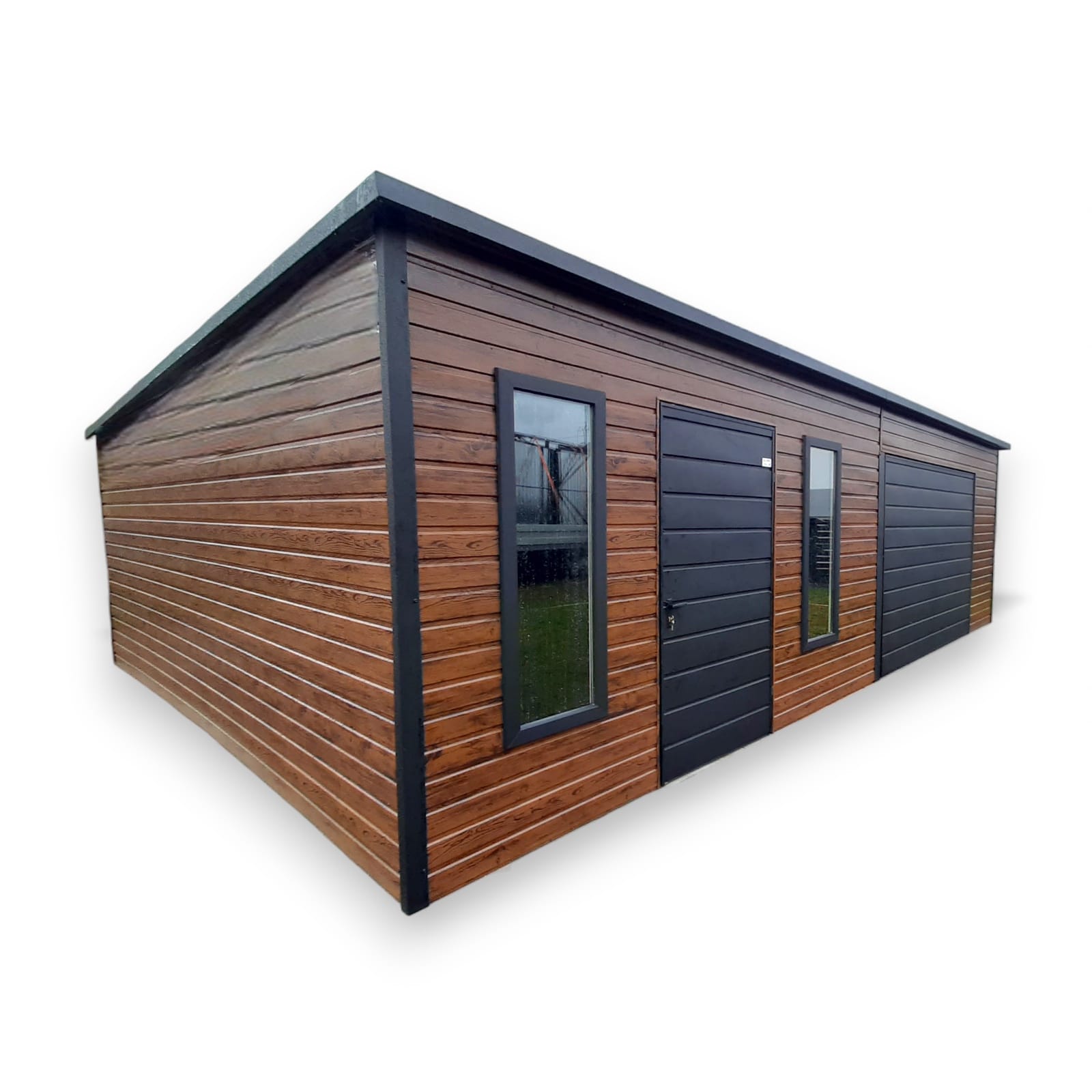 Garaż blaszany Premium 8×6 drewnopodobny brama uchylna
