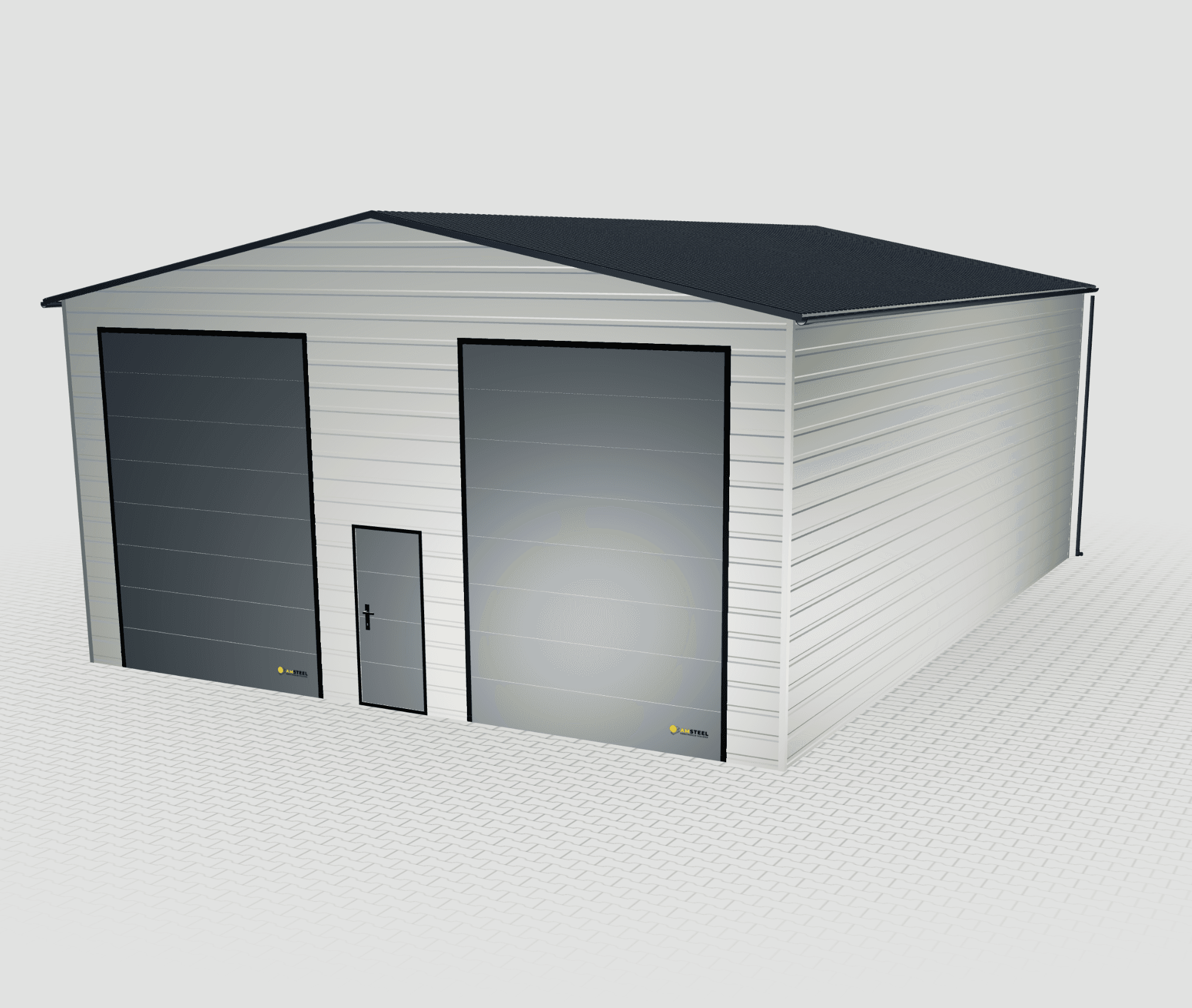 Garaż ocieplany z płyty warstwowej 9x12 z dwiema bramami segmentowymi – praktyczny, trwały i estetyczny