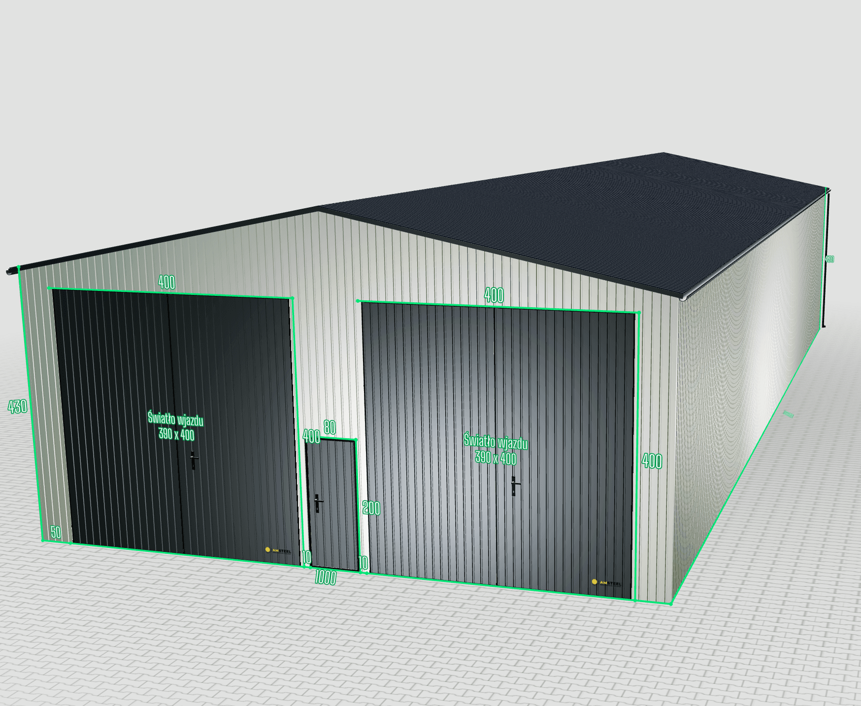 | Rodzaj bramy | Dwuskrzydłowa 390×400 |
