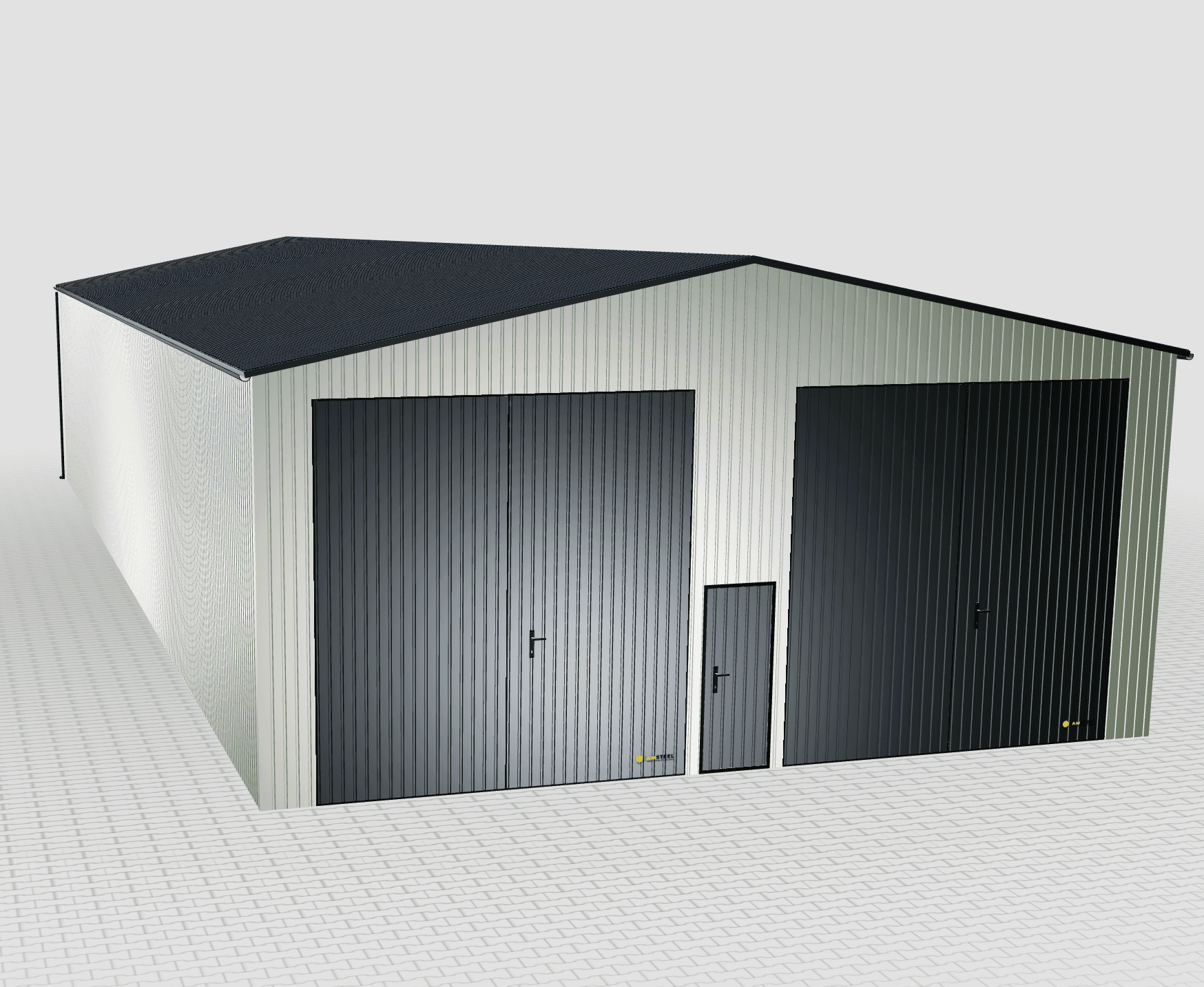 Ściany i dach hali wykonano z wytrzymałej blachy trapezowej, która cechuje się wysoką odpornością na uszkodzenia mechaniczne i korozję. Kolor RAL9010 biały oraz RAL7016 antracyt nadają obiektowi estetyczny, nowoczesny wygląd, jednocześnie zapewniając skuteczną ochronę przed deszczem, śniegiem i wiatrem. Szeroka gama barw z palety RAL pozwala dopasować kolorystykę do indywidualnych potrzeb.